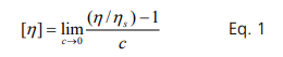 Viscosity is the parameter that characterizes the resistance of a fluid to flow: a higher viscosity fluid provides higher resistance. When proteins are added to aqueous media, viscosity increases with concentration because more work (or stress) is required to move the larger and more viscous protein molecules than low viscosity media. The intrinsic viscosity is defined as the rate of the viscosity increase with concentration as shown below: