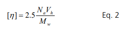 The rate of the viscosity increase is proportional to the hydrodynamic volume (Vh) of the molecule added to the media. Thus, the intrinsic viscosity, [η], is given by the Einstein-Simha equation for a spherically shaped object: