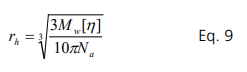 The hydrodynamic radius can be calculated from the intrinsic viscosity. For a spherical particle, Eq. 2 is rearranged for the hydrodynamic radius, rh: